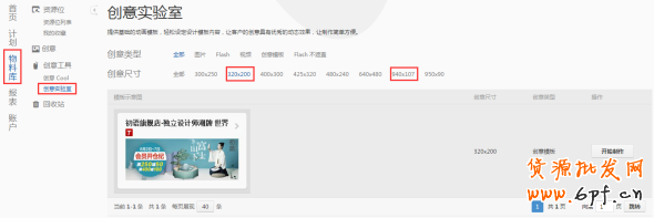無線創意模板尺寸是320×200,創意圖片尺寸是576×240。