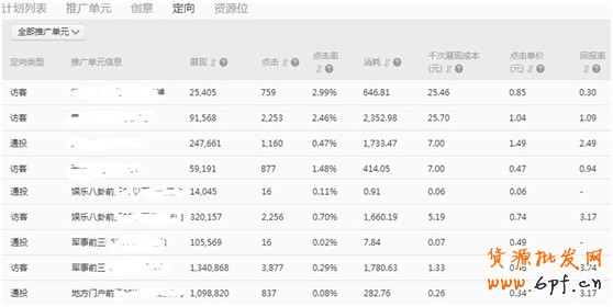 意思就是:將同等價(jià)值或者類型的資源位分組到單元中批量操作,第一要看到是引流成本,高就去掉,低就持續(xù)投放,長期積累下來會有屬于自己的一批黃金展位。
