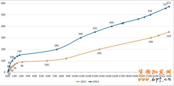 2、2014年第三季度阿里日均交易額為60.4億,571億是其9.5倍,就是相當于9.5天的銷量。而雙十一前后7天的交易量會有不少轉移到11.11這條來消費,這部分能占多少?我們的銷售實際提升幫助有多大?