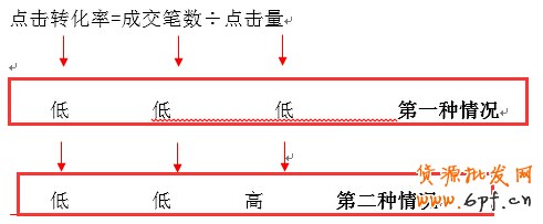 2、當(dāng)出現(xiàn)以下情況時(shí)候,應(yīng)該對(duì)點(diǎn)擊轉(zhuǎn)化率這樣進(jìn)行優(yōu)化: