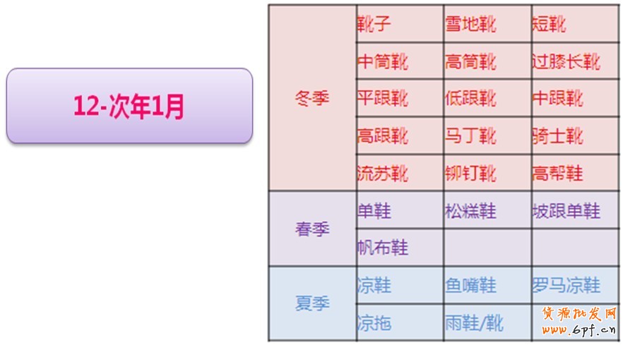 - 女靴的成交時期為9月到次年的2月,8月開始起頭,9月需求開始大增,10月正式進入高峰期。
