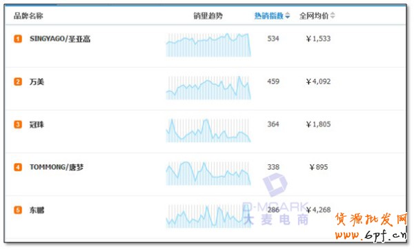當(dāng)前網(wǎng)上銷售得較好的品牌有東鵬、L&D、孔雀魚馬賽克、愷藍(lán)、圣亞高、萬美等,而玻化磚下的優(yōu)質(zhì)商家Top5排名如下圖展示。其中,東鵬瓷磚主要是分銷商經(jīng)營為主,暫時還沒有官方旗艦店;圣亞高在2014年7月在全網(wǎng)的熱銷排名第一, 全網(wǎng)客單價均價為¥1,533,全網(wǎng)有11家分店在售其產(chǎn)品;萬美瓷磚在全網(wǎng)的熱銷排名第二, 全網(wǎng)客單價均價為¥4,092,全網(wǎng)有8家分店在售其產(chǎn)品,客單價在行業(yè)內(nèi)屬于較高的商家。