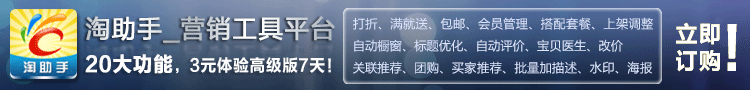 淘助手_賣家工具平臺,針對淘寶商品新的排名規則,在寶貝描述或店鋪首頁中安放各式各樣的推廣營銷模塊、店鋪公告通知等。比如寶貝關聯推薦 ;團購營銷推薦;寶貝活動主圖美化 個性設置寶貝logo、水印;店鋪活動一鍵發布海報、通知;買家口碑推薦、限時折扣等等16大功能。