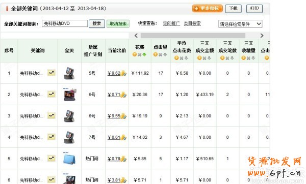 這個(gè)是直通車推廣里面一個(gè)計(jì)劃表格,首先,我們先分析,這個(gè)點(diǎn)擊率是好還是不好,怎么分析呢?那就是用流量解析,分析一下,大家所在的類目平均點(diǎn)擊是多少,先看下自己店鋪寶貝中匹配的類目是什么?這個(gè)是實(shí)踐中的操作那我們就先按這個(gè)類目來做分析:類目:影音電器>隨身聽/便攜視聽/收音>移動(dòng)/便攜DVD。