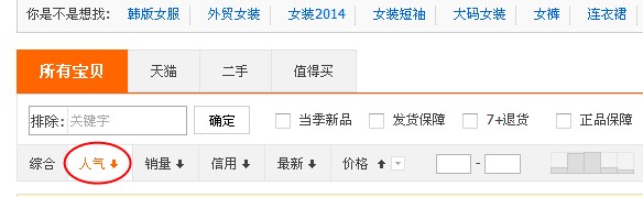 例如搜索“女裝”然后點(diǎn)一下“人氣”