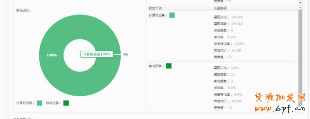2、根據站內外流量占比與PC移動端流量占比來判斷飆升詞的流量來源,并且調整不同平臺的出價折扣;
