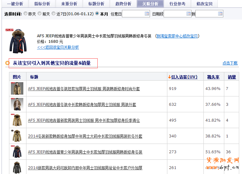 分析寶貝與其他寶貝的流量關(guān)系,包括該寶貝給其他寶貝引入的流量,其他寶貝給該寶貝引入的流量,確定該寶貝與其他寶貝的流量走勢(shì),設(shè)置搭配銷(xiāo)售,提高店鋪客單價(jià)。