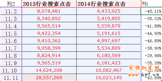 14年行業與13年行業搜索相差40-50%,按照這組數據,14年雙11最多完成15萬左右的搜索,而事實上14年雙11期間完我們成了20多萬的搜索數據,這是怎么來的?