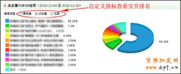“TOP10寶貝”為用戶提供不同數據指標排行TOP10的寶貝。您可以自定義單選查看不同的數據指標。