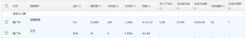 一天測試下來,發現天氣標簽因為覆蓋的人群較廣,雖然出價低,但是還是流量挺大的,一天引進了204個流量,點擊率也挺好的,為1.28%,轉化效果也好,ROI在4.58,PPC也還可以,在0.56。而類目標簽,測試下來,流量不大,可能也是因為我選擇覆蓋的人群較狹隘,覆蓋的人群較小,所以流量不大,就引進了2個流量,也沒有帶來成交。