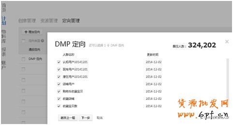 方法二、進入鉆展后臺,點擊計劃,選擇一個營銷計劃,點擊編輯,在定向管理里面增加定向,選擇DMP定向