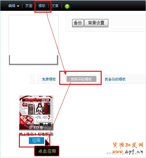 5、存放好剛才的代碼,我再次來到店鋪裝修,選擇我備份的模板,找到備份時間最新的模板,點擊應用。