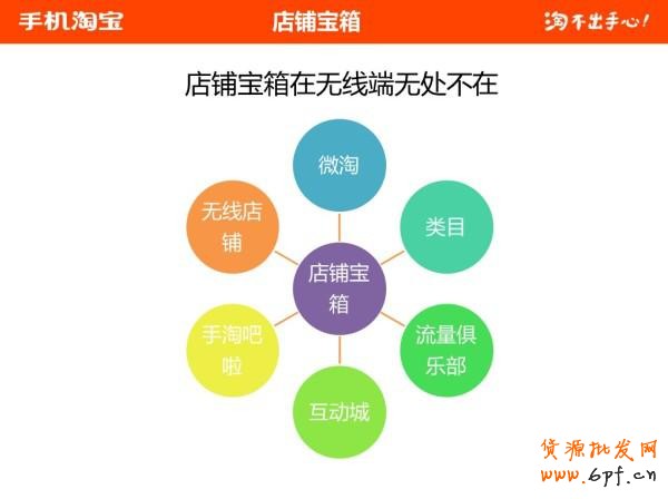 基于無線上的顯著變化,今年手機淘寶的搜索流量占比可能會逐漸下降,來自其它渠道的流量開始逐漸上升,也就是說,大量的流量會來自一些社區產品和個性化的產品。所以店鋪寶箱會跟無線端的各個頻道合作,出現在手機淘寶的各個角落,包括類目的頻道頁、活動頁、微淘、手淘社區吧啦、互動城、流量俱樂部、無線店鋪首頁等等,幫助大家吸引流量到店鋪。