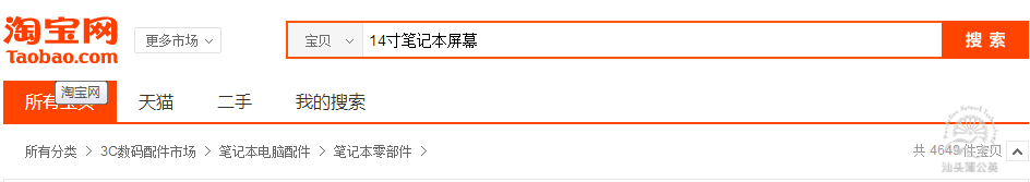 在整個14寸筆記本屏幕的搜索中,共有4649款寶貝,整個類目的競爭方面較之大類目小了很多。