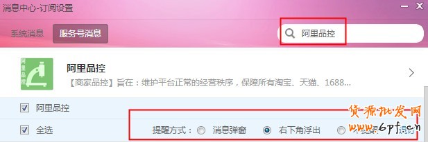 3、PC千牛客戶端 :消息中心→消息訂閱→輸出“阿里品控”。