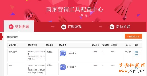 每日贏寶箱的獎池里必須且僅包含手機流量,中獎概率為90%,否則創建每日贏寶箱時獎池不可選;