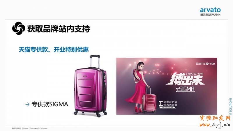 以新秀麗的案例為例。新秀麗是一個知名拉桿箱品牌,客單價較高,在天貓的客單價大約在1500元左右,實際購買人群以30~40歲的客群為主。因此服務商在操作這個店鋪的時候希望讓更年輕的用戶接受這個品牌,特別是85后、90后人群,在傳播的時候也需要更強調年輕感和時尚感。因此,利用韓國人氣明星李敏鎬的代言資源,舉辦了線下的品牌發布會和粉絲見面會,打爆品牌傳播。整體活動下來跟天貓置換到了50多個重量級資源位,拿到了不錯的品牌曝光和流量資源。