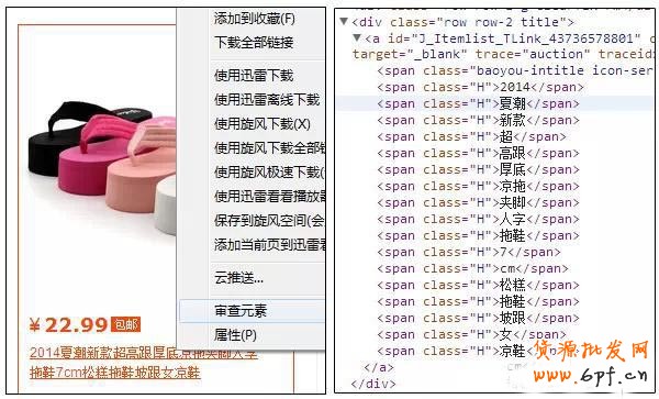 1.先復(fù)制寶貝的整個(gè)標(biāo)題,然后粘貼到淘寶首頁搜索框搜索,在搜索結(jié)果頁主圖下面的標(biāo)題上點(diǎn)右鍵,選審查元素(若所用瀏覽器沒這個(gè)選項(xiàng),可以換個(gè)瀏覽器嘗試):