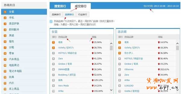 最后一個是行業排行。就是淘寶上面的類目排行。同樣要注意這個統計時間。