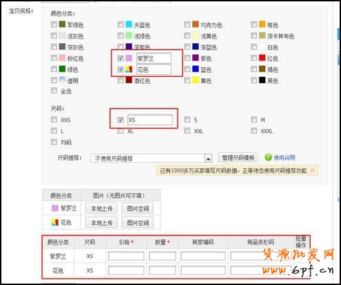 商品多個價格的設置,是需要有顏色、尺碼等套餐信息的支持,如果您的商品有顏色屬性,即可以勾選對應的顏色或尺碼屬性,方可設置不同的價格,如圖:
