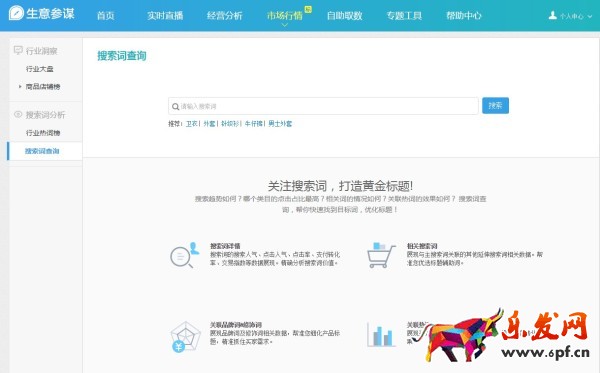 市場行情主要由三個大的版塊構成:行業大盤、商品店鋪榜(行業粒度)、搜索詞分析(行業熱詞榜、搜索詞查詢)。下面把各個板塊的基本內容給大家介紹下: