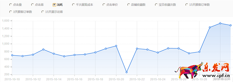 經(jīng)過分層的流量推廣,總體的流量呈現(xiàn)了上升的趨勢,但趨勢是相對比較和緩的,這個也是為什么賬戶能致勝雙十一的原因之一。直通車的提流,是需要緩步有規(guī)則的提流,而不是盲目提流,流量的提升的同時,也需要相應(yīng)的效果呈現(xiàn)以及檢驗流量的精準(zhǔn)度以及可適用性。可從圖中的ppc的趨勢看,每次的提流ppc其實都會有上升的趨勢,但需要的是緩步提升中ppc的下降,因此這個過程中,不斷的測試圖片以及測試關(guān)鍵詞,是可以達(dá)到這樣的結(jié)果的。