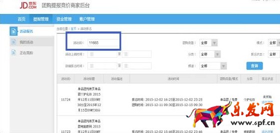 第三步:在團購提報界面點擊活動報名在團購界面輸入活動ID,查詢后進入產品報名界面。