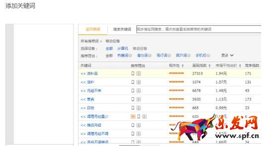 我們主要是要在無線端得到展現,所以在選擇的時候在選擇設備那里直接選擇移動設備,然后根據自己的產品去選擇關鍵詞,在這里還需要注意一點的就是:就算是中長尾關鍵詞,也是需要有展現和點擊率的,不然我想問你選他干嘛?你們說對不對。