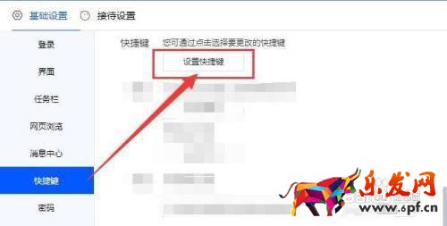 3、進(jìn)入“基礎(chǔ)設(shè)置”界面后,在“快捷鍵”中,點(diǎn)擊“設(shè)置快捷鍵”進(jìn)入,如圖所示。